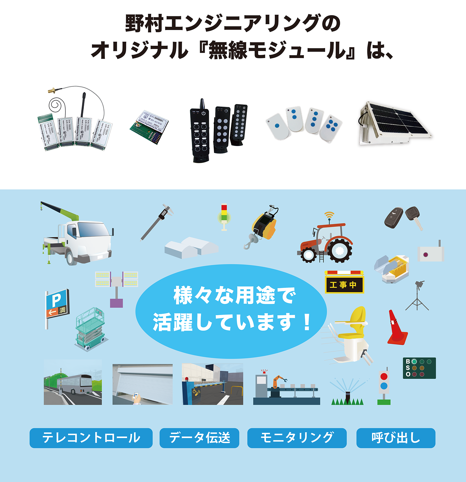 野村エンジニアリング株式会社は、無線機器を中心とした製品の回路設計、組み込みソフトウェア開発を行っています。